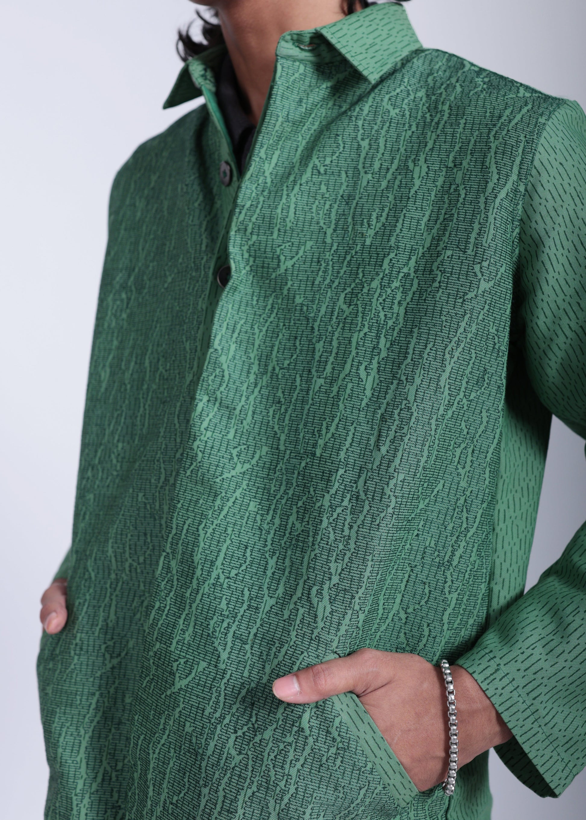 The Euphoric Emerald Shacket is a richer, more vibrant take on green. Confident, sharp, and built to stand out without losing subtlety.